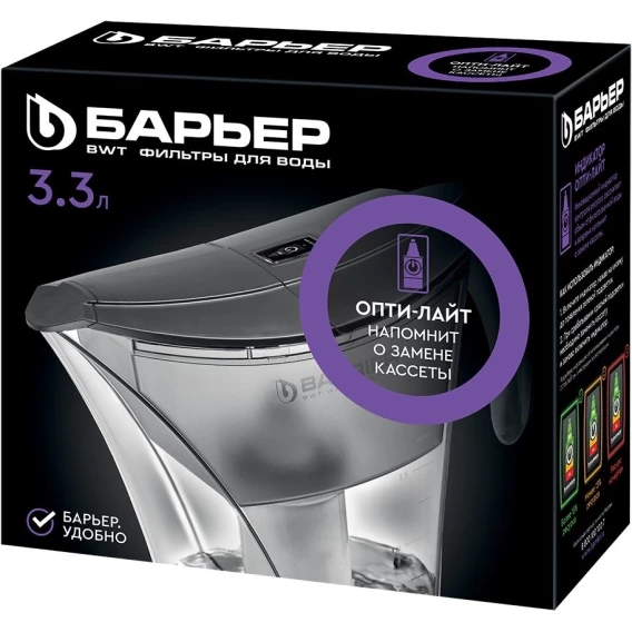 Особенность фильтров-кувшинов БАРЬЕР — надежное резьбовое крепление кассеты к воронке кувшина, что исключает попадание неочищенной воды из воронки в отфильтрованную воду.