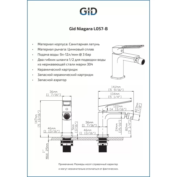 Смеситель для биде без донного клапана GID Niagara L057-CH-B