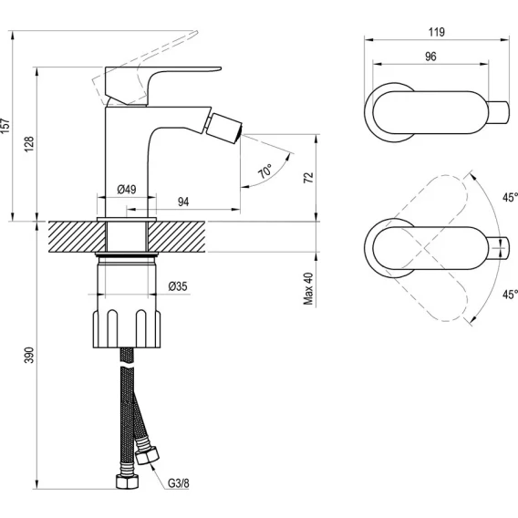 Смеситель для биде без донного клапана Ravak Eleganta EL 056.60RGB X070369