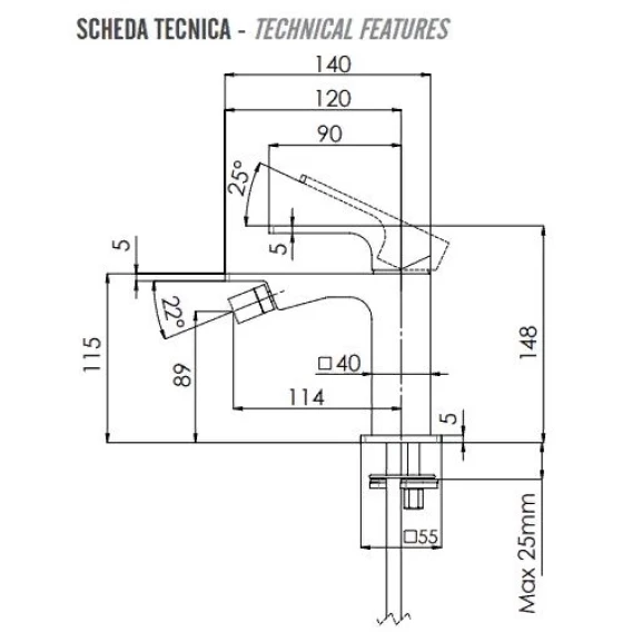 Смеситель для биде без донного клапана Remer Absolute AU21VO