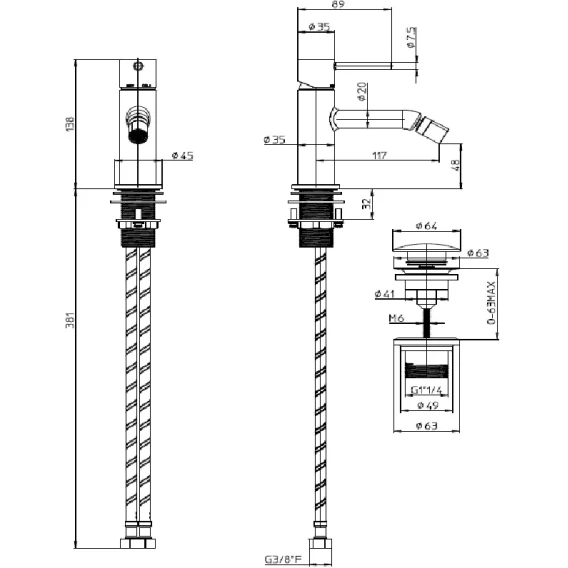 Смеситель для биде Bossini Teo Z00702.094 c донным клапаном, никель матовый