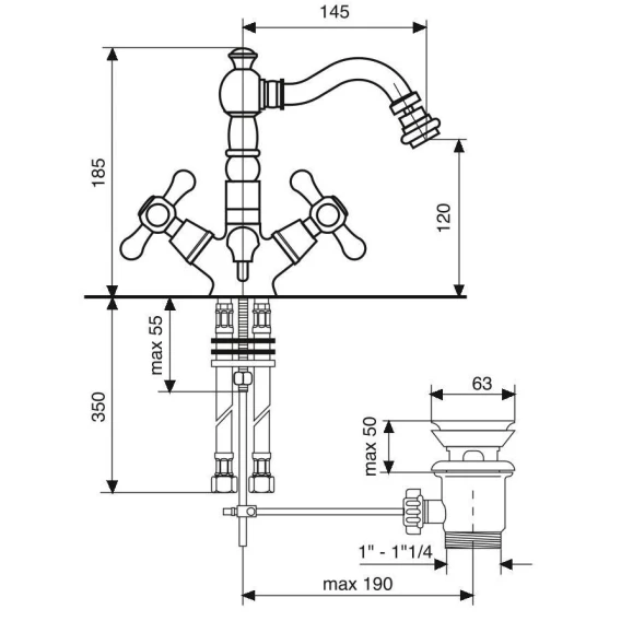 Смеситель для биде Emmevi Deco Old 12614/CR с донным клапаном, хром
