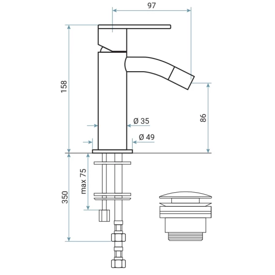 Крепление, Аэратор, Гибкая подводка, Донный клапан