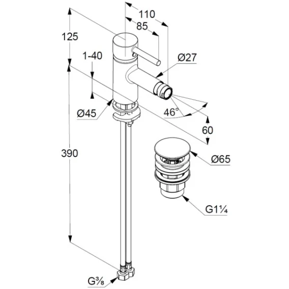 Смеситель для биде Kludi Bozz 38533N076 с донным клапаном, золотой матовый