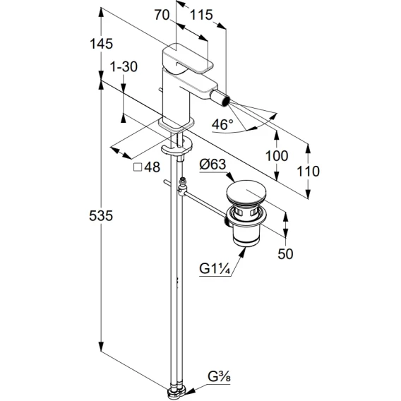 Смеситель для биде Kludi Renon 422163975 с донным клапаном, черный матовый