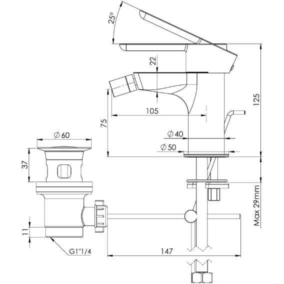 Смеситель для биде Mariani Winter A14493WN12 с донным клапаном, черный матовый