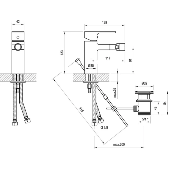 • соединительные шланги: гибкий 400 мм, диаметр G3/8