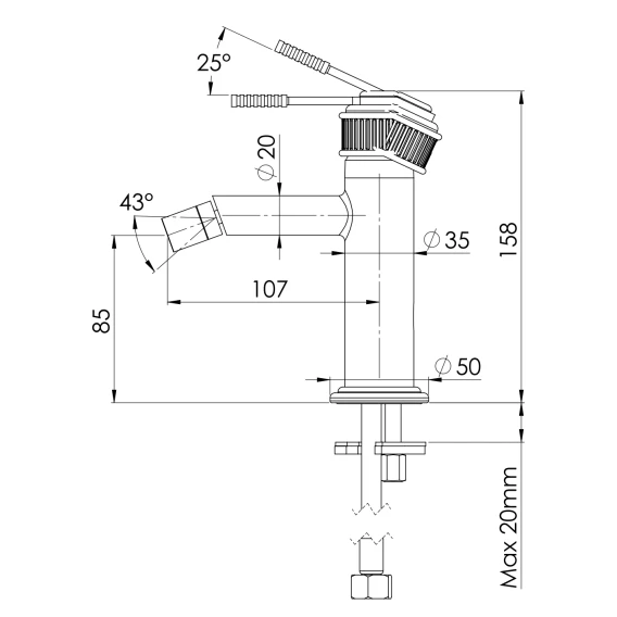 Смеситель для биде Remer Atelier AL22 без донного клапана, хром