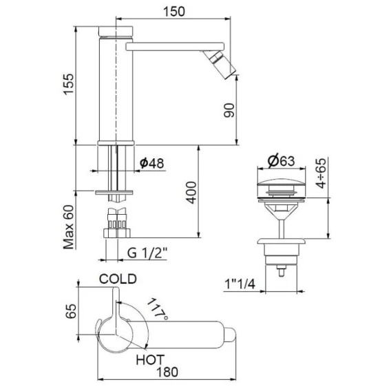Крепление, Аэратор, Гибкая подводка, Донный клапан, CoolStart