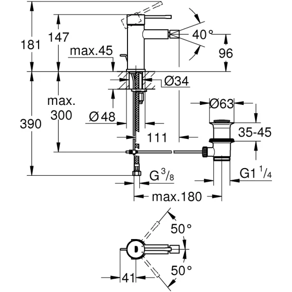 Смеситель для биде с донным клапаном Grohe Essence New 32935001