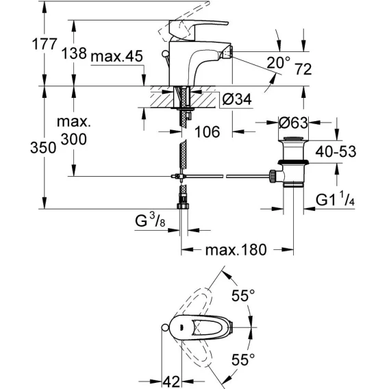 Смеситель для биде с донным клапаном Grohe Europlus 33241001