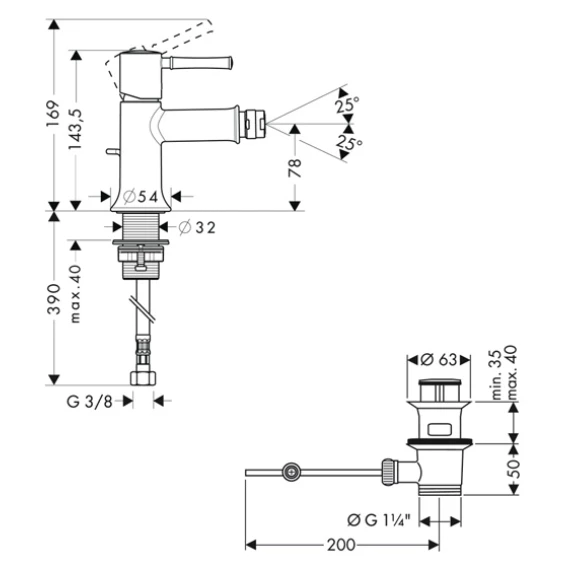 Смеситель для биде с донным клапаном Hansgrohe Talis Classic 14120000