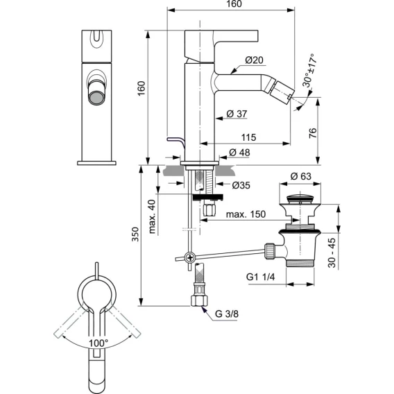Смеситель для биде с донным клапаном Ideal Standard Joy BC784AA