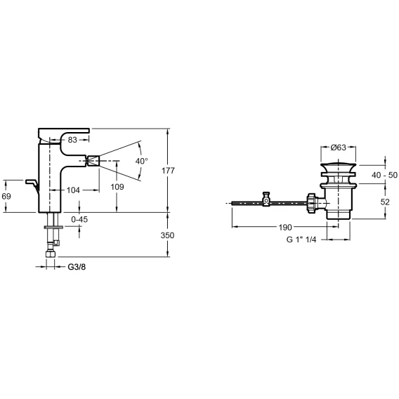 Смеситель для биде с донным клапаном Jacob Delafon Strayt E98338-CP