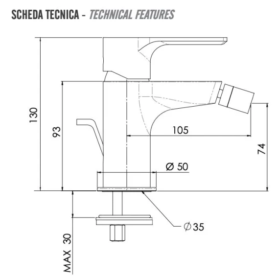 Смеситель для биде с донным клапаном Remer Energy EY20