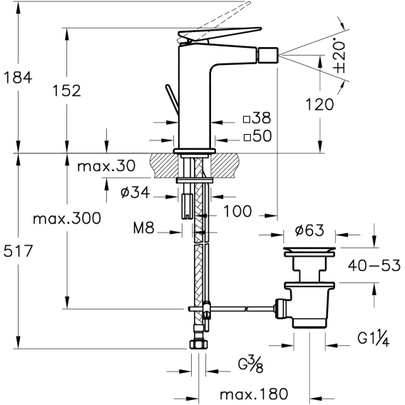 Смеситель для биде с донным клапаном VitrA Brava A42612EXP