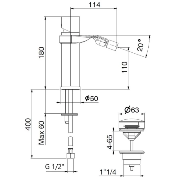 Смеситель для биде с донным клапаном Webert One-B NB840102015