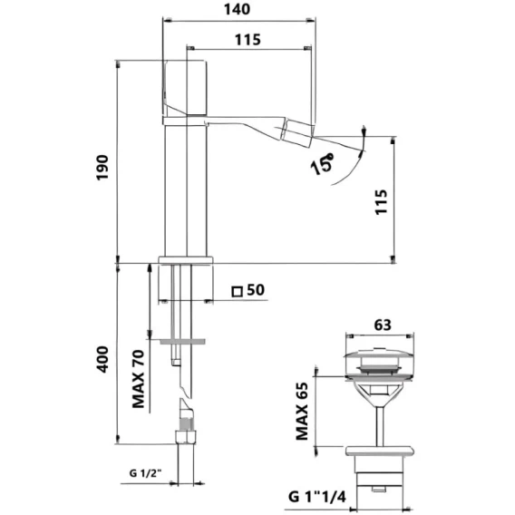 Смеситель для биде с донным клапаном Webert One-X OX840102015