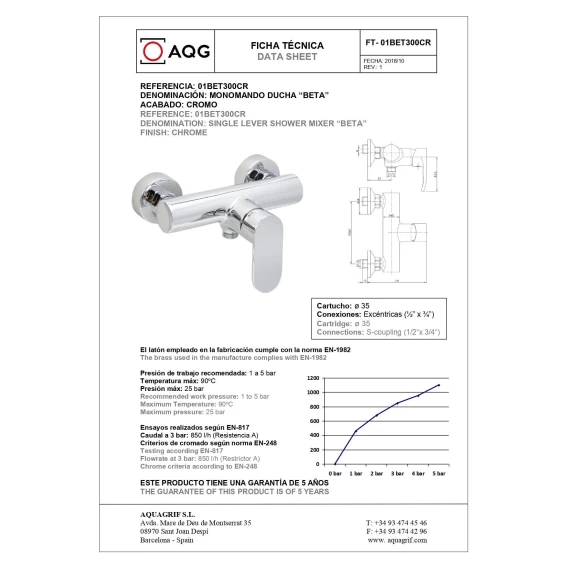 Смеситель для душа AQG Beta 01BET300CR хром