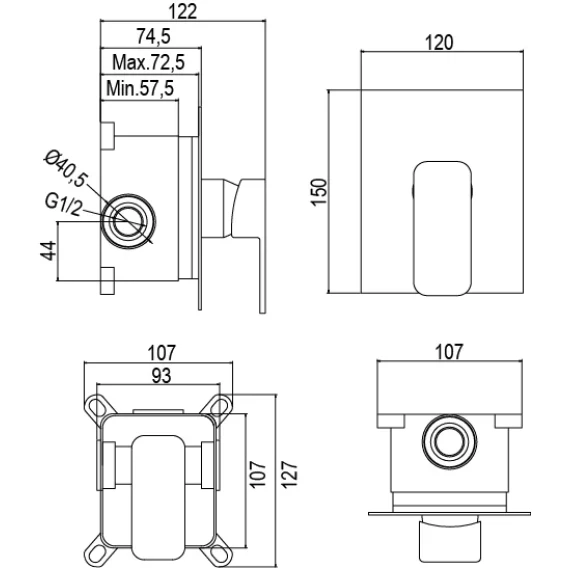 Смеситель для душа AQG Bold 01BOL350CR встраиваемый, хром