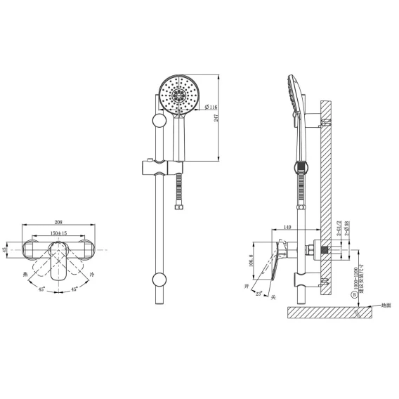 Крепление, Металлическая розетка, Эксцентрики, Душевой шланг, Душевая лейка, Держатель для душевой лейки, Штанга душевая