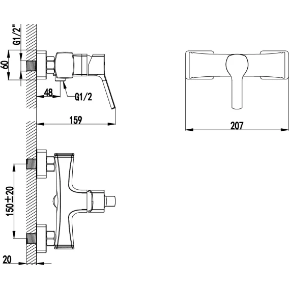Смеситель для душа AWP Shira S0503C с душевым гарнитуром, хром