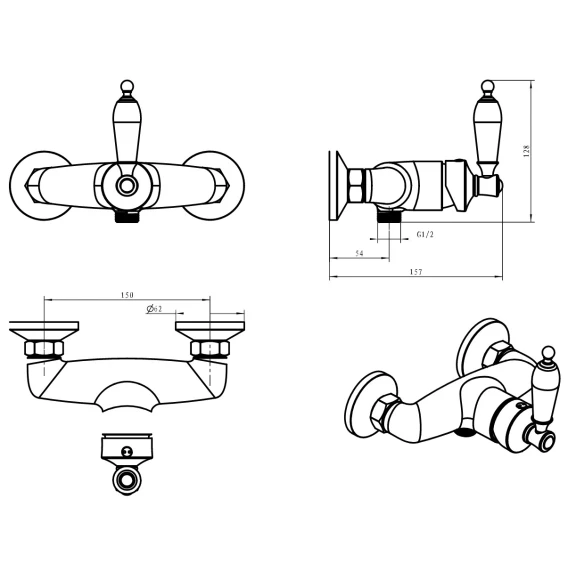 Смеситель для душа Boheme Vogue Swarovski 214-BSW золотой/черный