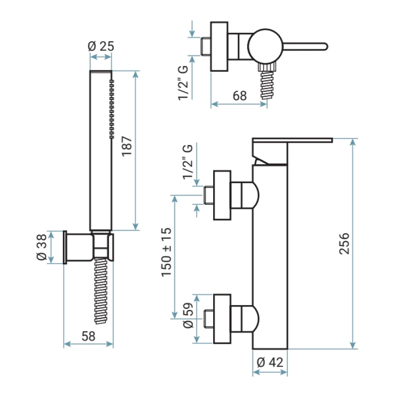 Металлическая розетка, Эксцентрики, Душевой шланг, Душевая лейка, Держатель для душевой лейки