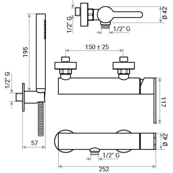 Металлическая розетка, Эксцентрики, Душевой шланг, Душевая лейка, Держатель для душевой лейки