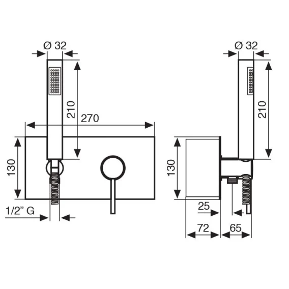 Душевой шланг, Душевая лейка, Подключение для душевого шланга с держателем, Скрытая монтажная часть
