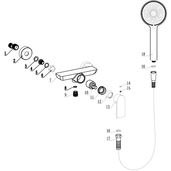 Металлическая розетка, Эксцентрики, Душевой шланг, Душевая лейка, Держатель для душевой лейки