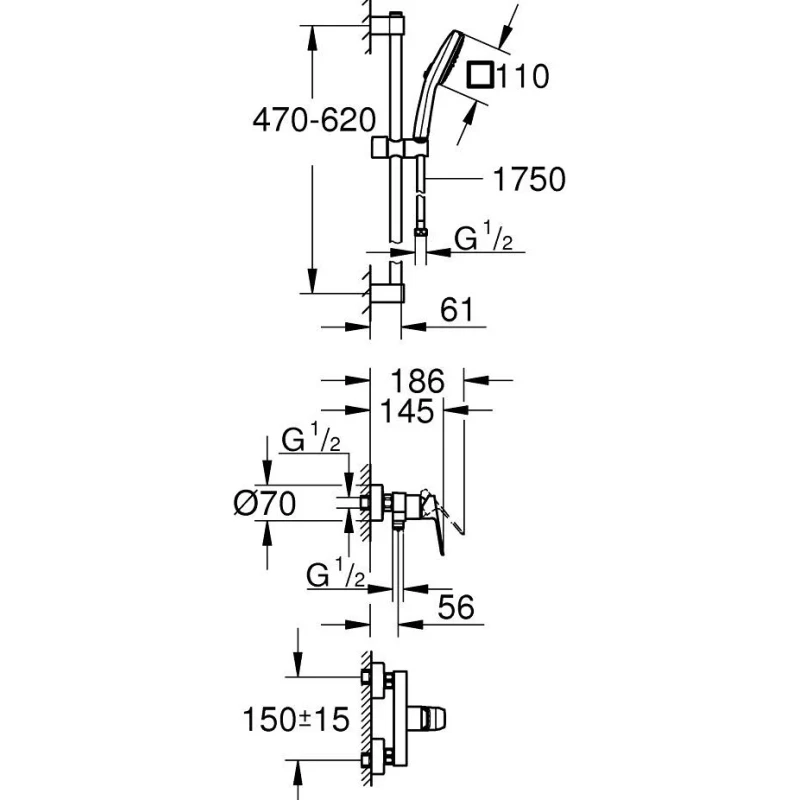 • с душевым набором Tempesta Cube 110 shower rail set (26 748)