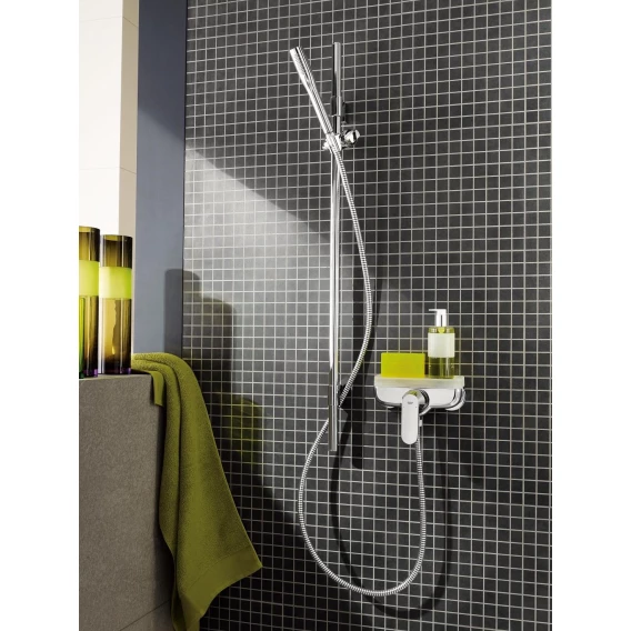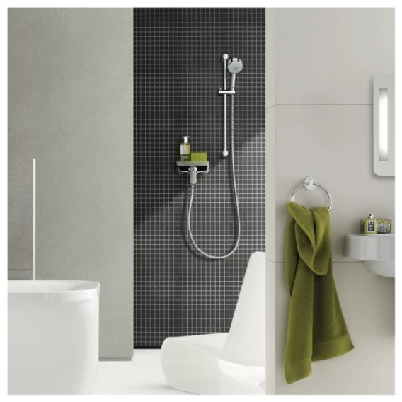 При выборе смесителя для душа выбор пал однозначно на фирму Grohe. Надежное немецкое качество, при этом их цены мне нравятся больше, чем у собратьев из Hansgrohe. Модель Eurosmart Cosmopolitan это своего рода компромисс. Хороший надежный латунный корпус, в нем чувствуется вес и уверенность. Предлагается за адекватную цену. При этом сама модель довольно простая, ничего лишнего и получается вроде без переплаты. У нас на кухне уже несколько лет стоит смеситель из серии Cosmopolitan и он нас полностью устраивает. За 5 лет ничего протекать не начало, качество устраивает, так что решили и дальше оставаться на этой серии. В комплекте со смесителем шланг не идёт, поэтому был отдельно докуплен металлический шланг, а также душевая штанга и душевая лейка из той же серии. Установка обычная, в комплекте со смесителем идут два эксцентрика, сантехник нам всё повесил и подключил меньше, чем за час.