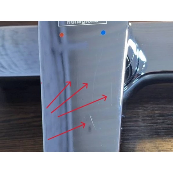 • Присутствуют незначительные потёртости на корпусе, ручке смесителя.
