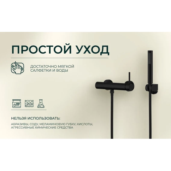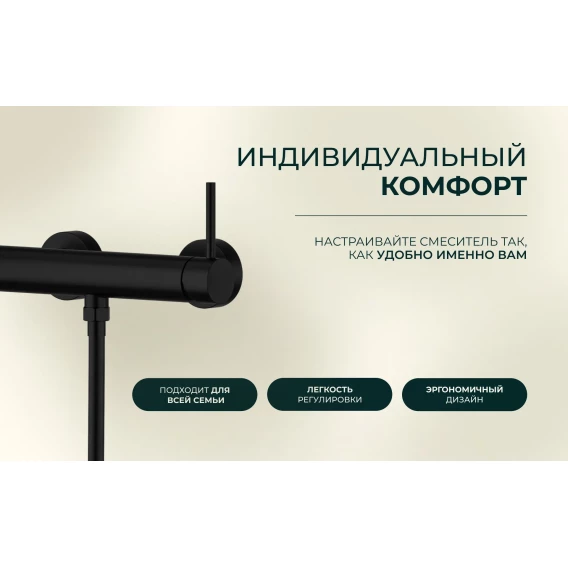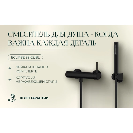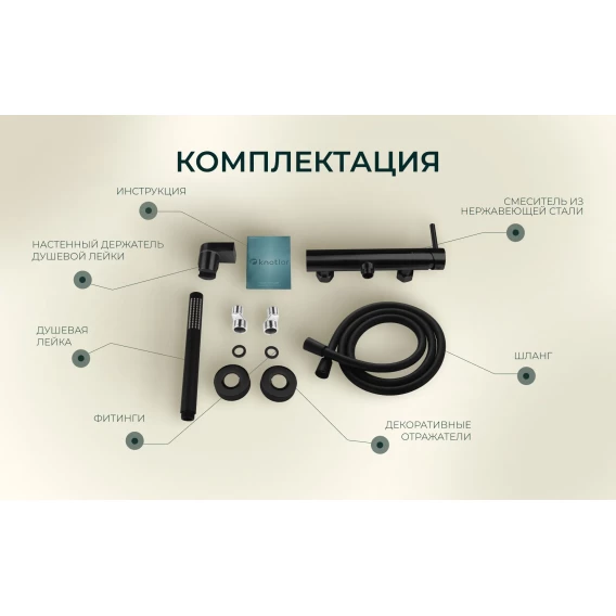 Смеситель для душа Knotlor Eclipse SS-22/BL с душевым гарнитуром, черный матовый