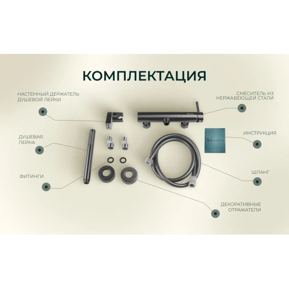 Металлическая розетка, Эксцентрики, Душевой шланг, Душевая лейка, Держатель для душевой лейки