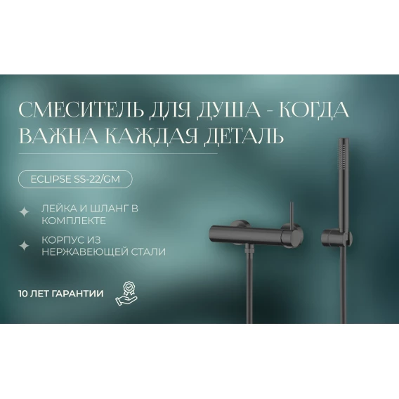 Смеситель для душа Knotlor Eclipse SS-22/GM с душевым гарнитуром, вороненая сталь