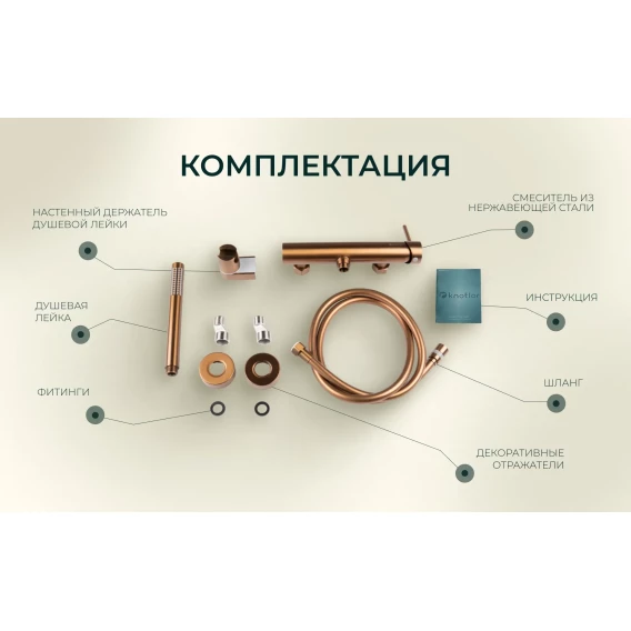 Металлическая розетка, Эксцентрики, Душевой шланг, Душевая лейка, Держатель для душевой лейки