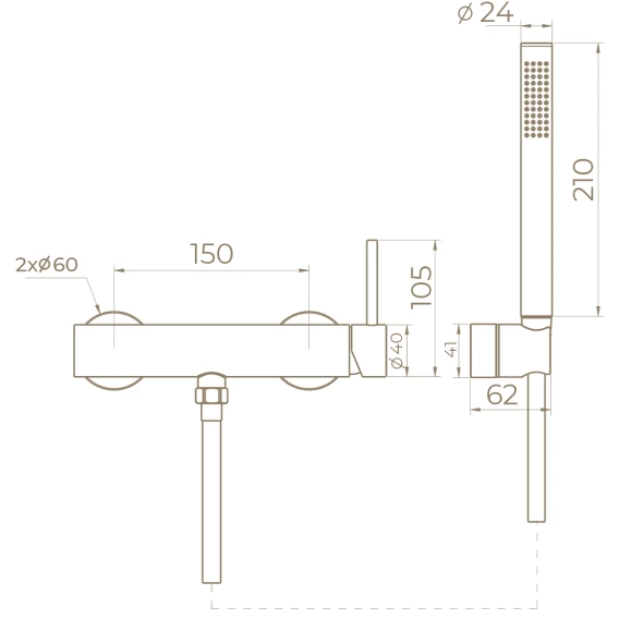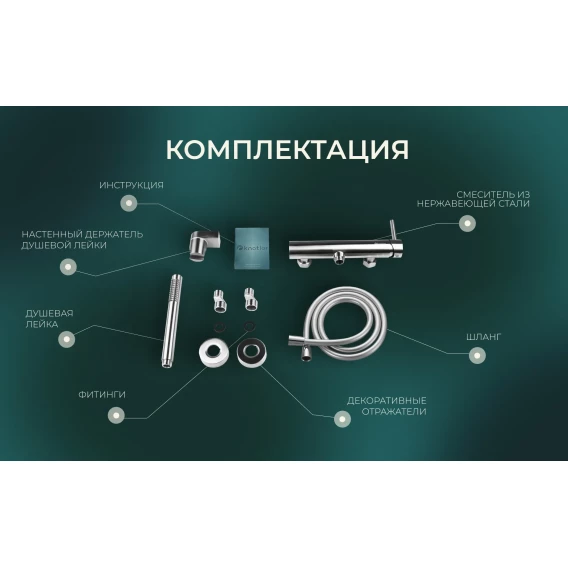 Металлическая розетка, Эксцентрики, Душевой шланг, Душевая лейка, Держатель для душевой лейки