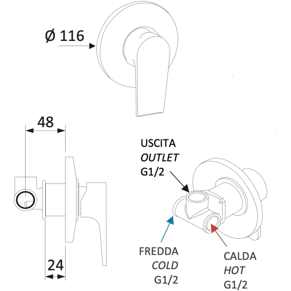 Смеситель для душа Mariani Artic B00179AT00 встраиваемый, хром