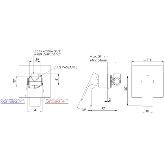 Смеситель для душа Mariani Rebel B00179RE встраиваемый, хром
