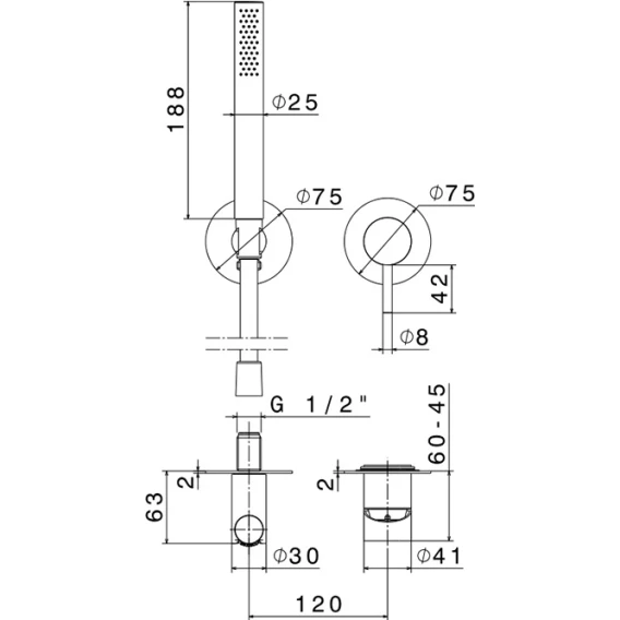 Душевой шланг, Душевая лейка, Подключение для душевого шланга с держателем