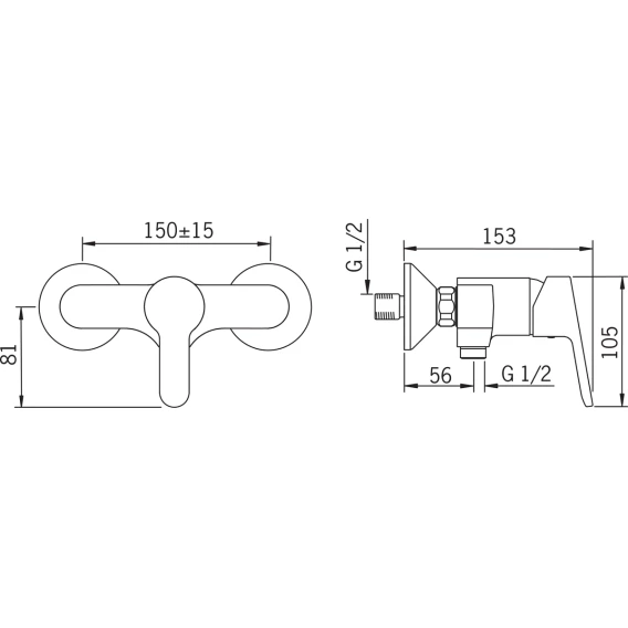 Cмеситель для душа с эксцентриковыми соединителями и розетками
