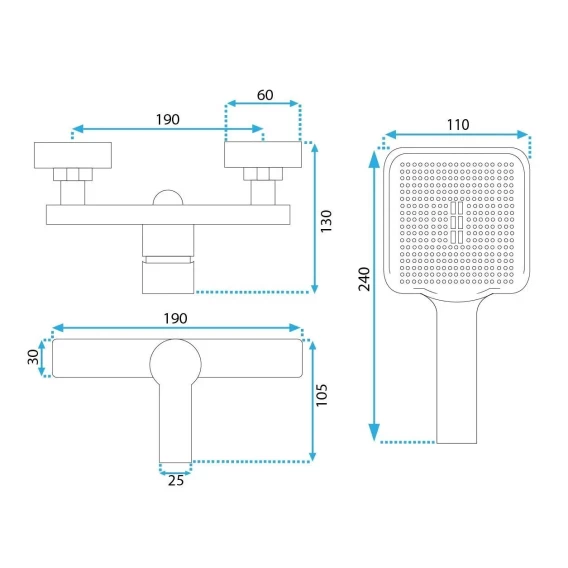 Металлическая розетка, Эксцентрики, Душевой шланг, Душевая лейка, Держатель для душевой лейки