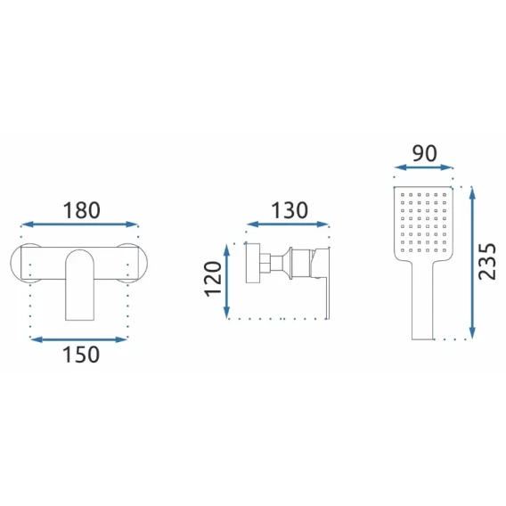 Металлическая розетка, Эксцентрики, Душевой шланг, Душевая лейка, Держатель для душевой лейки