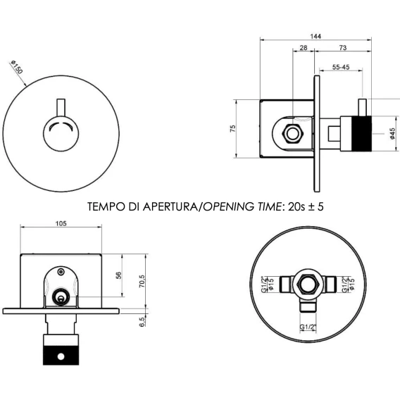 Смеситель для душа Remer Tempor TE30M встраиваемый, порционный, хром
