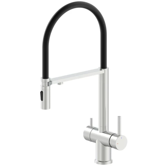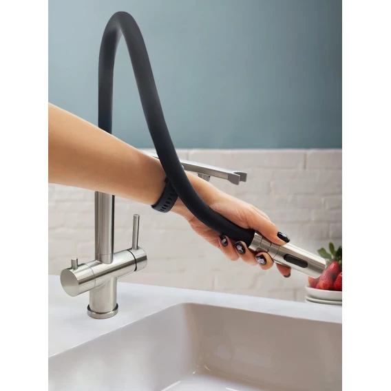Смеситель для кухни AltroBagno Flusso AltroBagnoFlusso050201Ni с подключением к фильтру, гибким изливом, никель