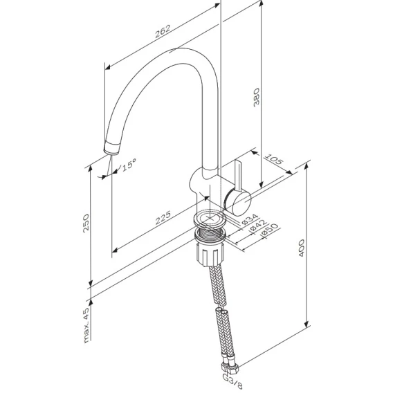 Длина излива 22.5 см
