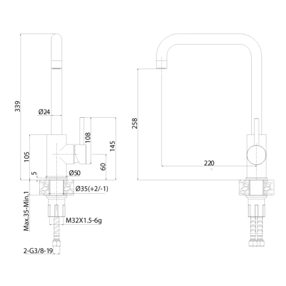 Высота излива 25.8 см