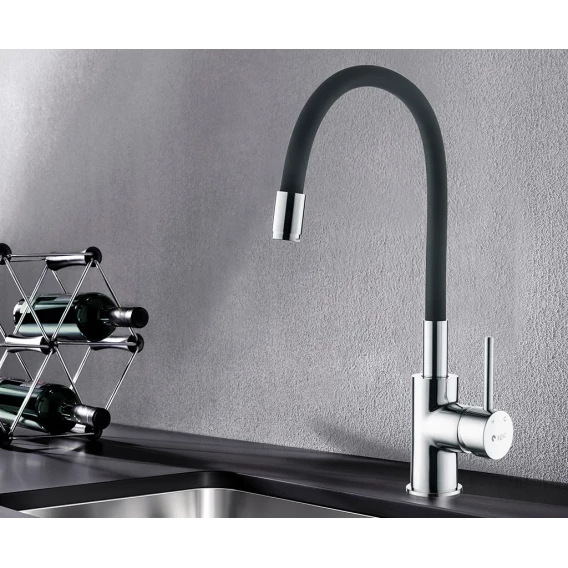 Смеситель для кухни AQG Wolobby 05WOL570NG с гибким изливом, хром/черный
